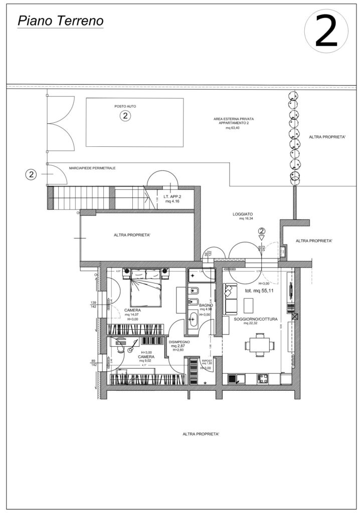 Completa la proprietà un garage di mq 22,50, un locale tecnico e un posto auto privato.