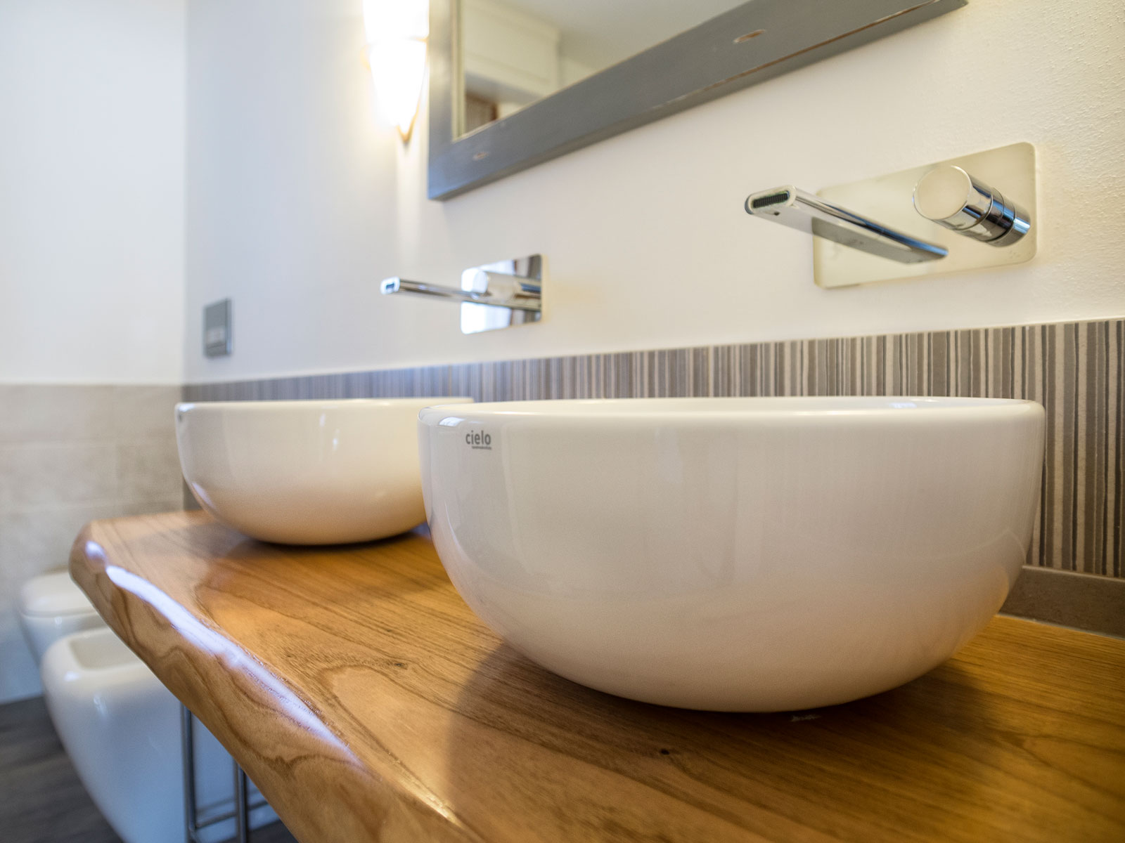Notevole la cura con cui sono stati eseguiti i dettagli, come ad esempio il taglio 45 delle piastrelle del bagno principale così da evitare antiestetici profili, l’esecuzione a regola d’arte delle nicchie sopra i sanitari e in doccia, il cartongesso con inserti led.
