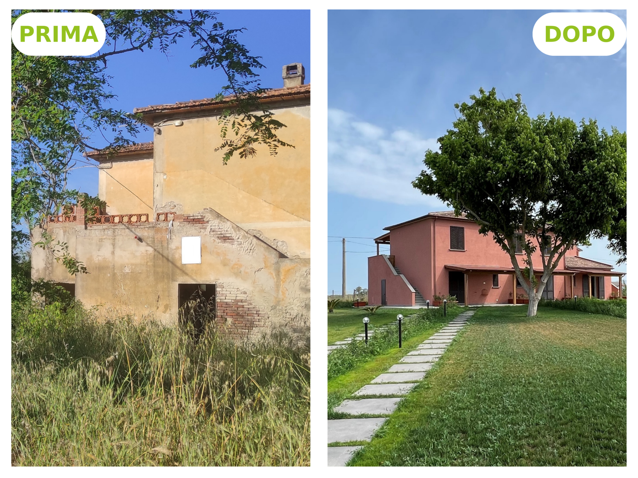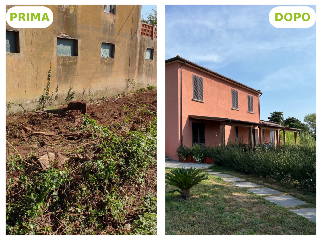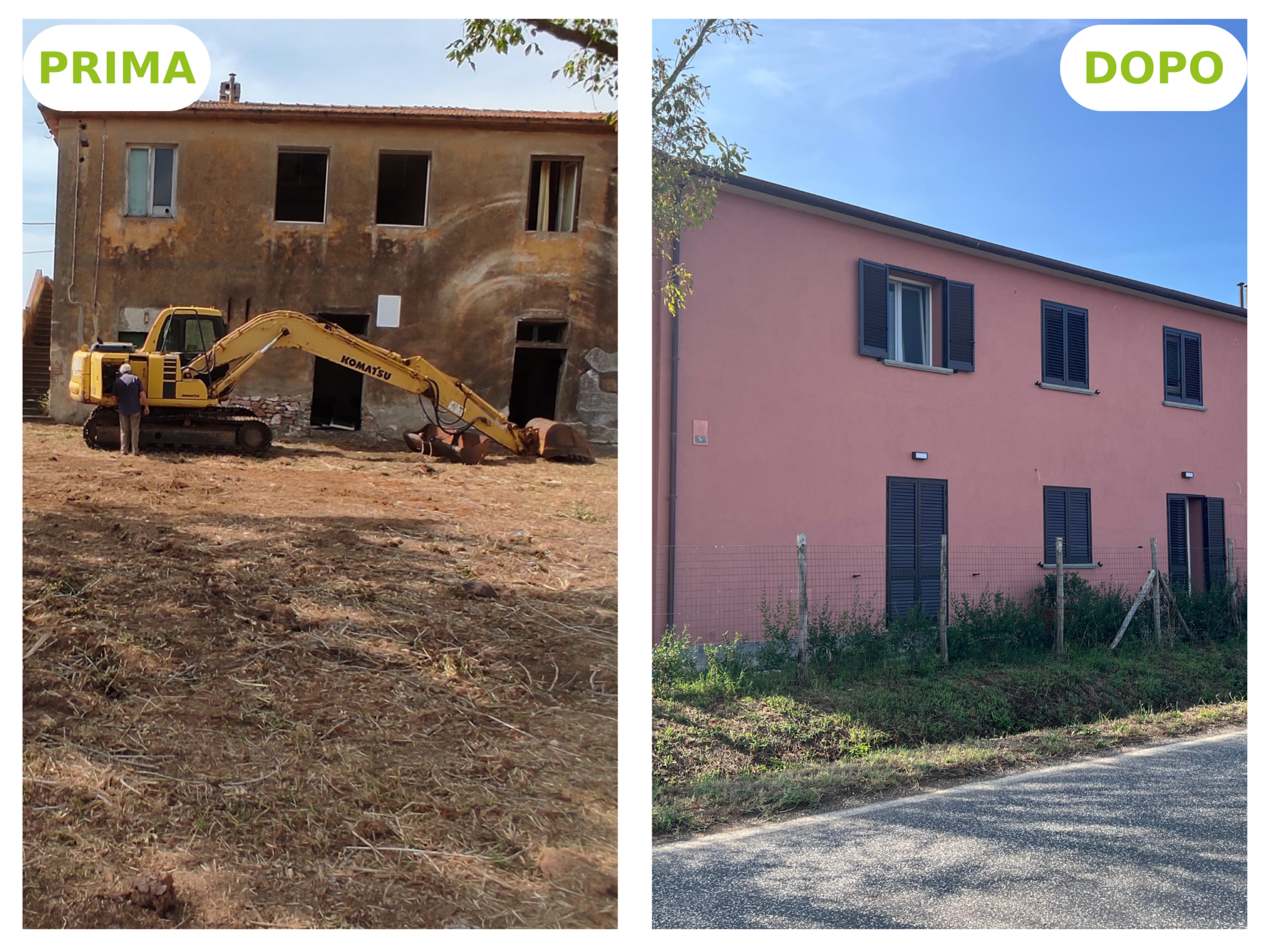 Il vecchio casale di origine rurale, costruito intorno al 1950, è nato come casa colonica a servizio della grande azienda agricola. E’ un tipico casale toscano, in muratura portante in pietra, solai con travi, travicelli e mezzane, libero su quattro lati, si sviluppa su due piani. Sono state realizzate cinque unità abitative delle quali tre al piano terra e due al piano primo tutte con ampio giardino privato e posti auto.