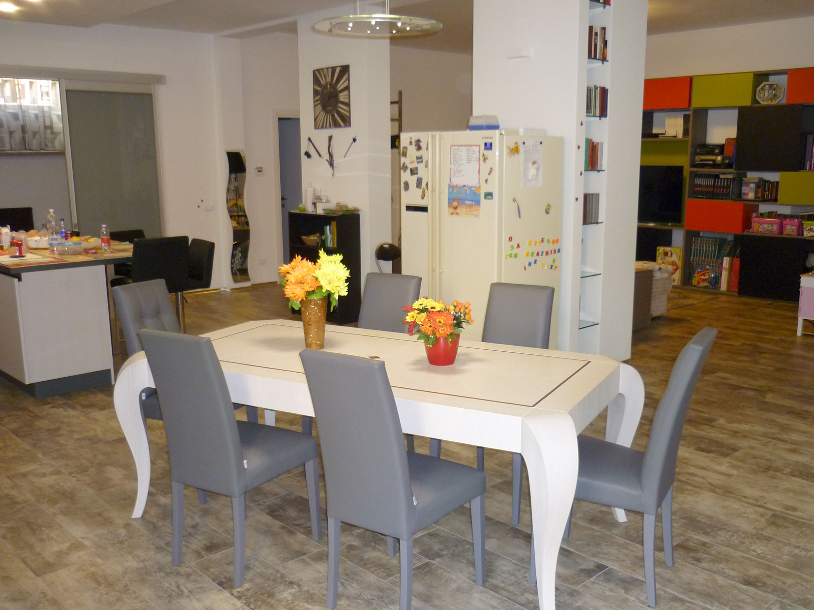 E’ stata realizzata una grande zona giorno con cucina a vista, ideale per la committenza: una famiglia con bambini.