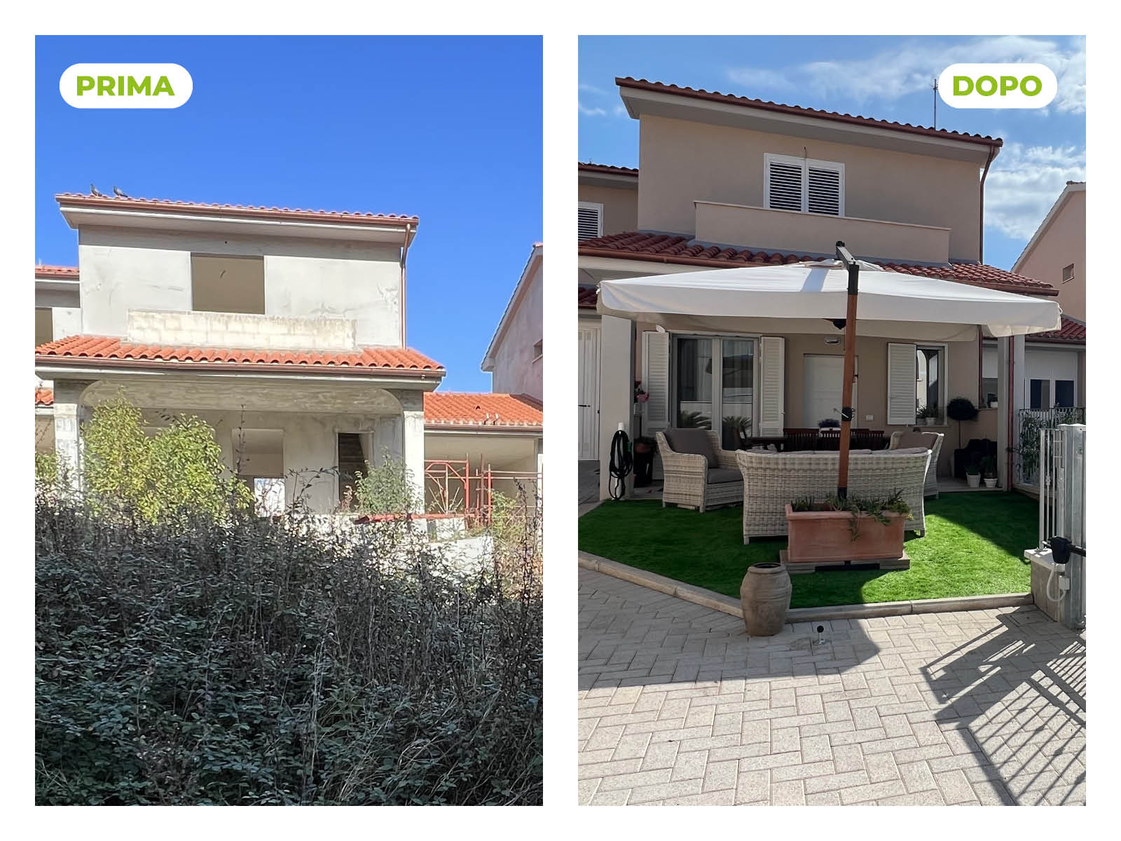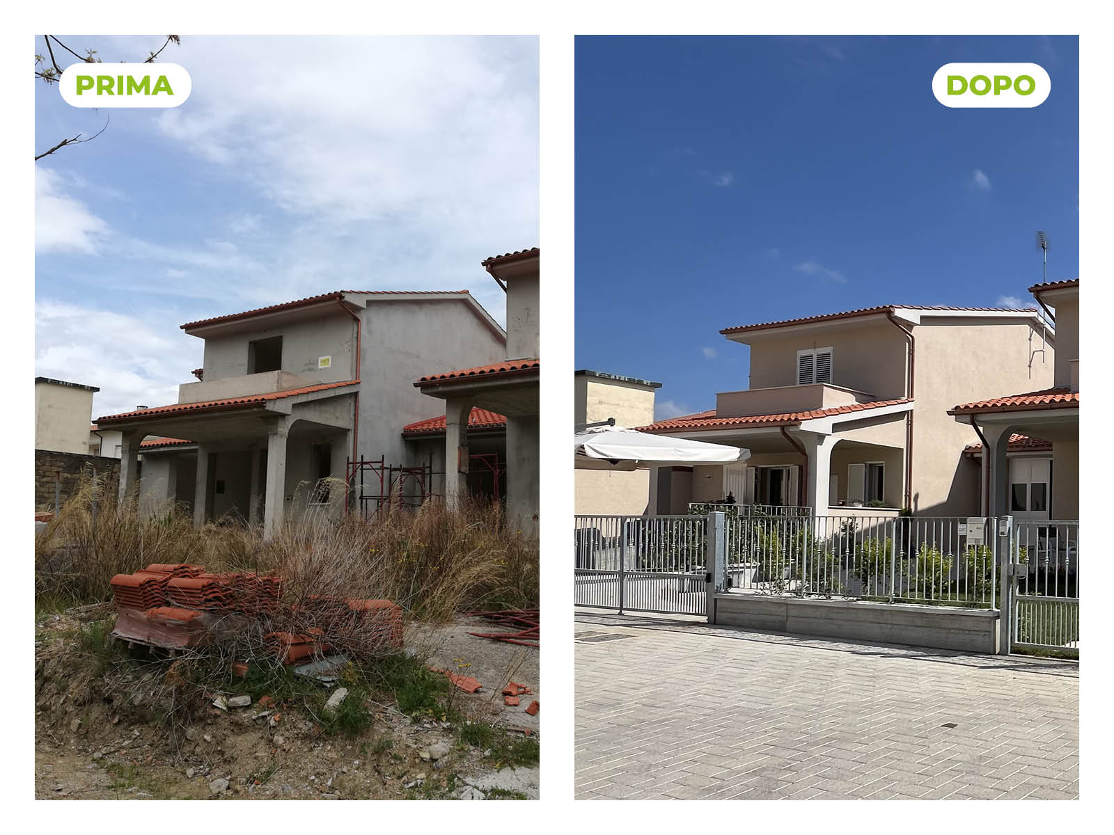 Il progetto ha previsto la conclusione compreso la personalizzazione di tutti i materiali di tre villette a schiera di nuova costruzione dotate di corte in proprietà esclusiva, ingresso indipendente e garage privato. Ogni appartamento avrà un proprio impianto solare termico e un impianto fotovoltaico.